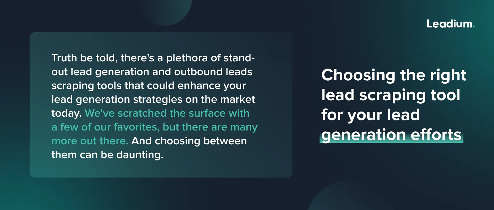 Truth be told, there’s a plethora of stand-out lead generation and outbound leads scraping tools that could enhance your lead generation strategies on the market today. We’ve scratched the surface with a few of our favorites, but there are many more out there. And choosing between them can be daunting.