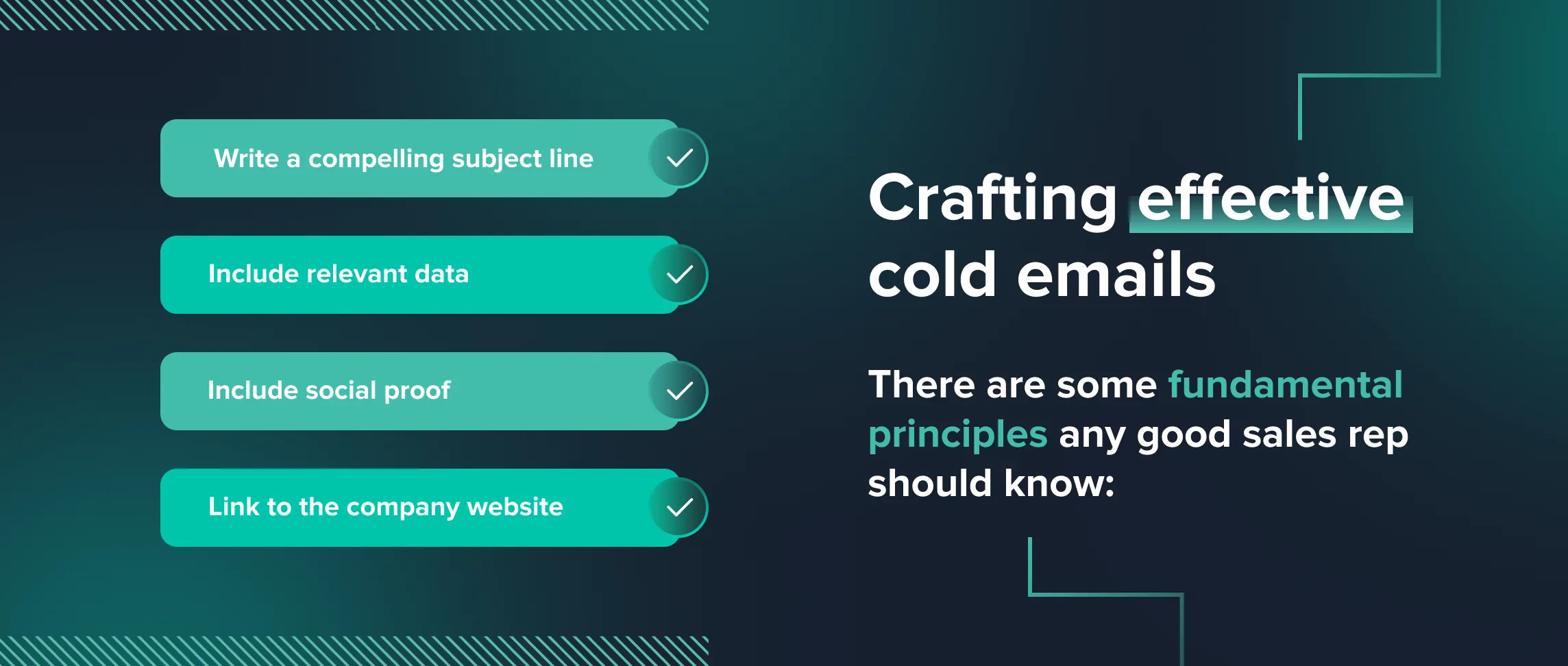 Never neglect the importance of the cold email itself. Writing a great cold email requires practice, but there are some fundamental principles any good sales rep should know. For example: