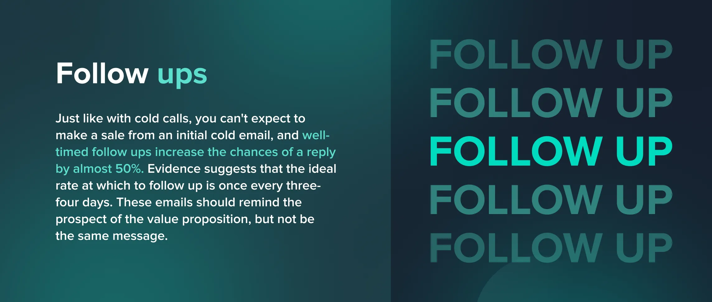 Just like with cold calls, you can't expect to make a sales from an initial cold email, and well-timed follow ups increase the chances of a reply by almost 50%. But when should you follow up?