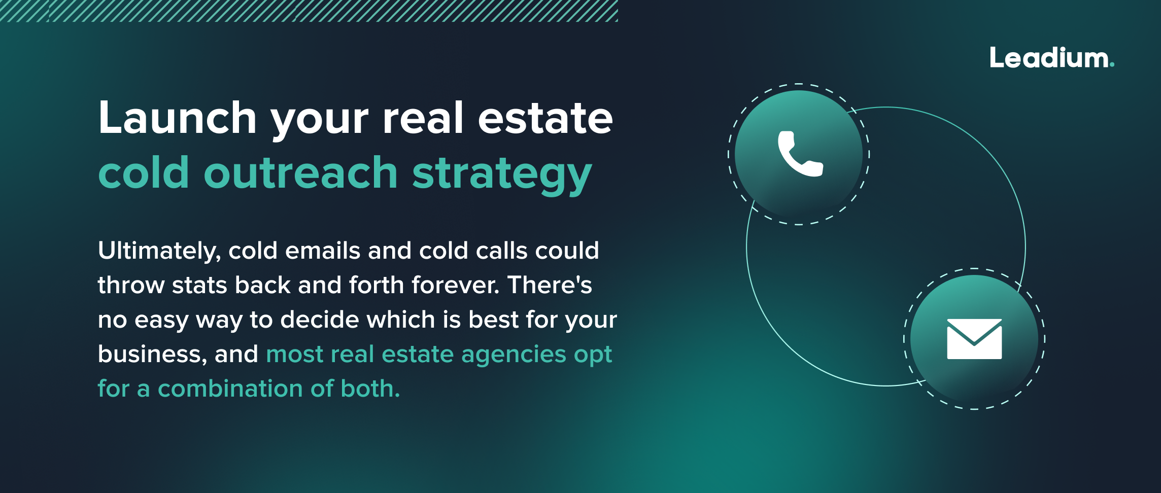 Ultimately, cold emails and cold calls could throw stats back and forth forever. There's no easy way to decide which is best for your business, and most real estate agencies opt for a combination of both.