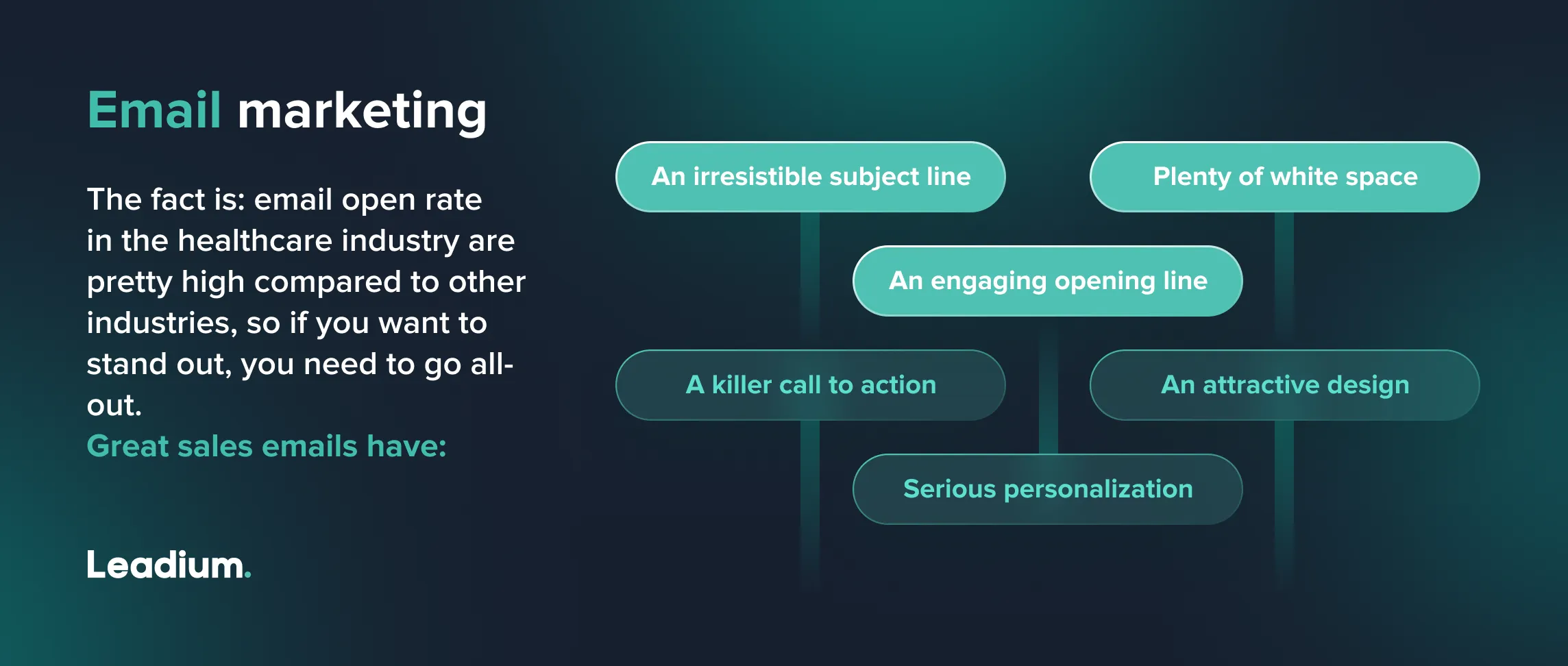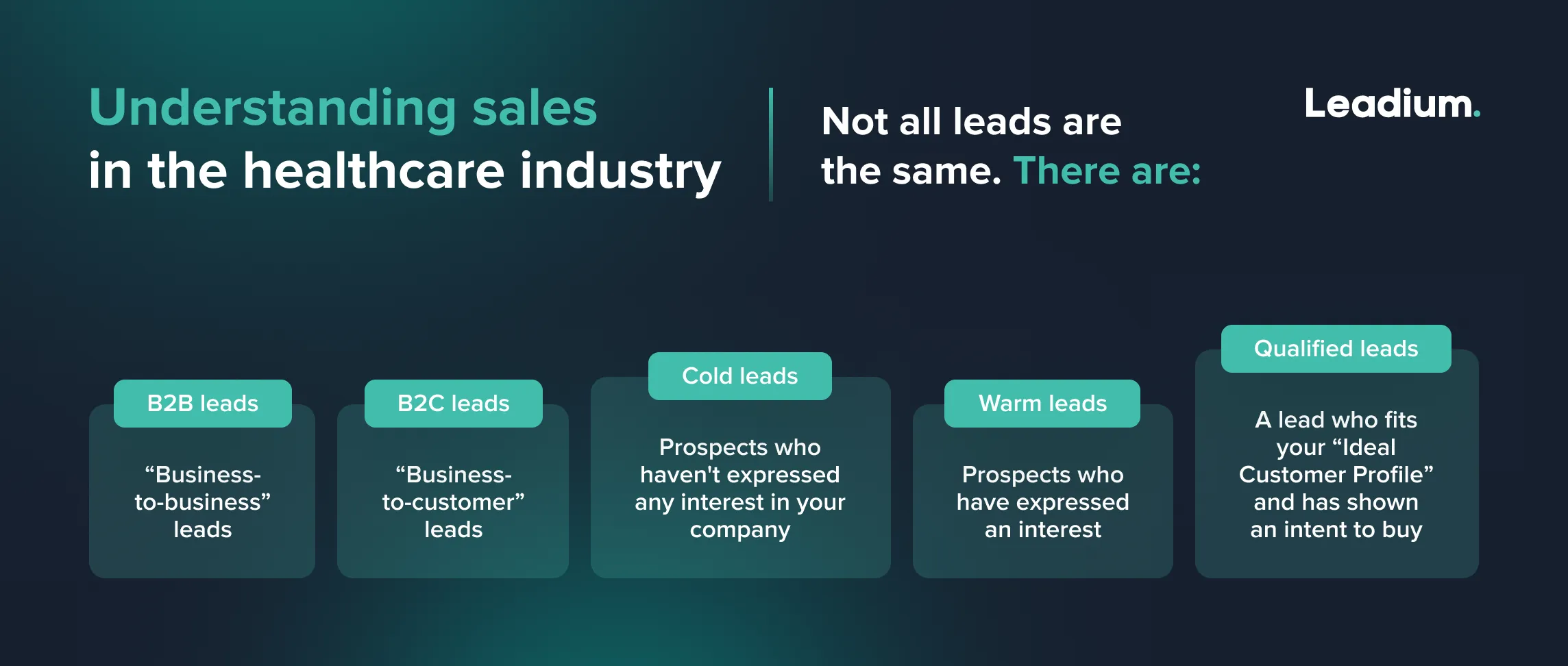 And don't forget: there are a ton of great lead generation companies waiting to help out. Agencies like Leadium provide industry-leading lead generation services across a range of engagement channels to find you the qualified medical leads you need. They leverage their tech know-how and industry experience to transform your lead generation process into a lead-capturing machine.