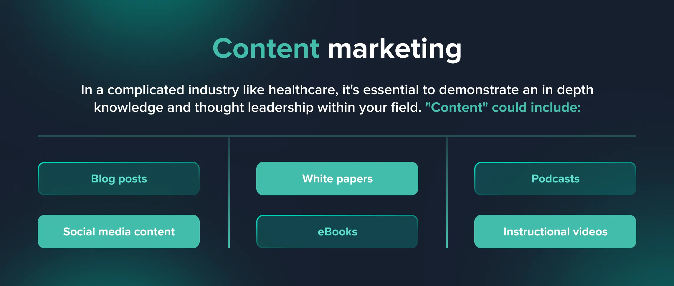 In a complicated industry like healthcare, it's essential to demonstrate an in depth knowledge and thought leadership within your field.