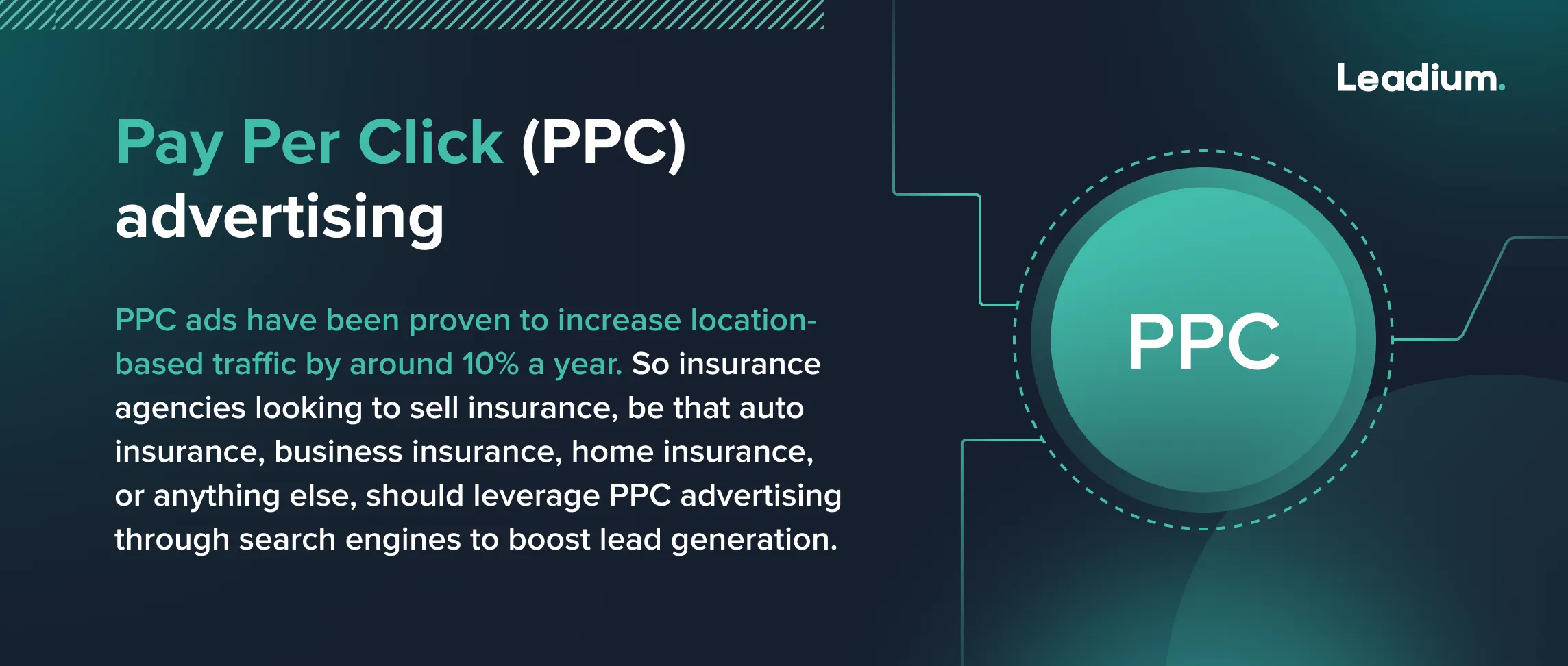 PPC ads have been proven to increase location-based traffic by around 10% a year. So insurance agencies looking to sell insurance, be that auto insurance, business insurance, home insurance, or anything else, should leverage PPC advertising through search engines to boost lead generation.