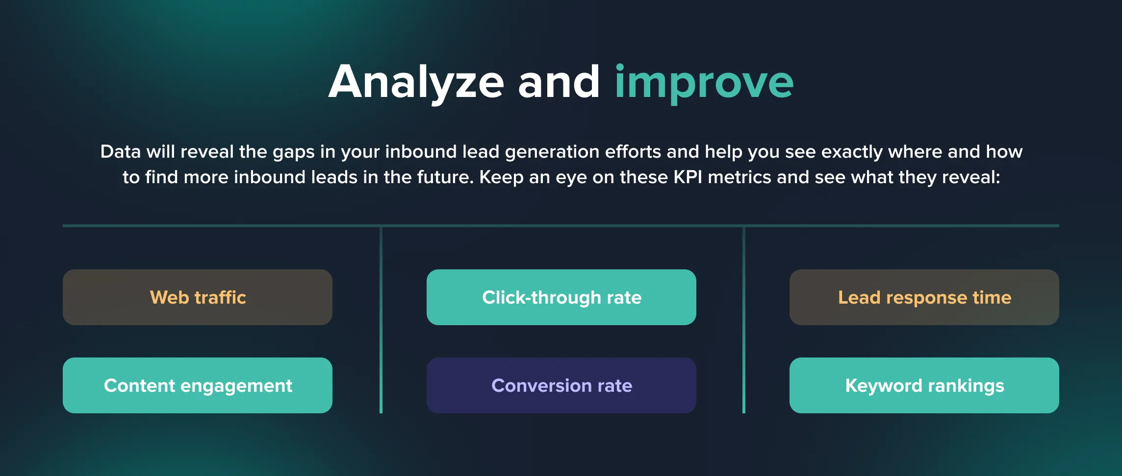 Data will reveal the gaps in your inbound lead generation efforts and help you see exactly where and how to find more inbound leads in the future.