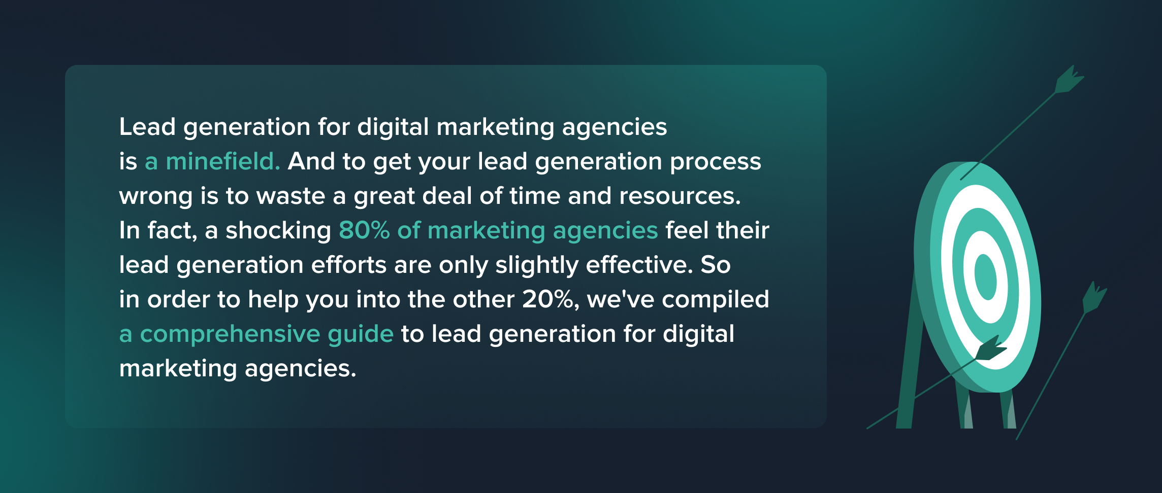 So in order to help you into the other 20%, we’ve compiled an comprehensive guide to lead generation for digital marketing agencies. We’ll discuss the lead generation basics, the importance of target audience refinement, and go over four tried-and-tested lead generation strategies you can implement for a healthier sales pipeline today.