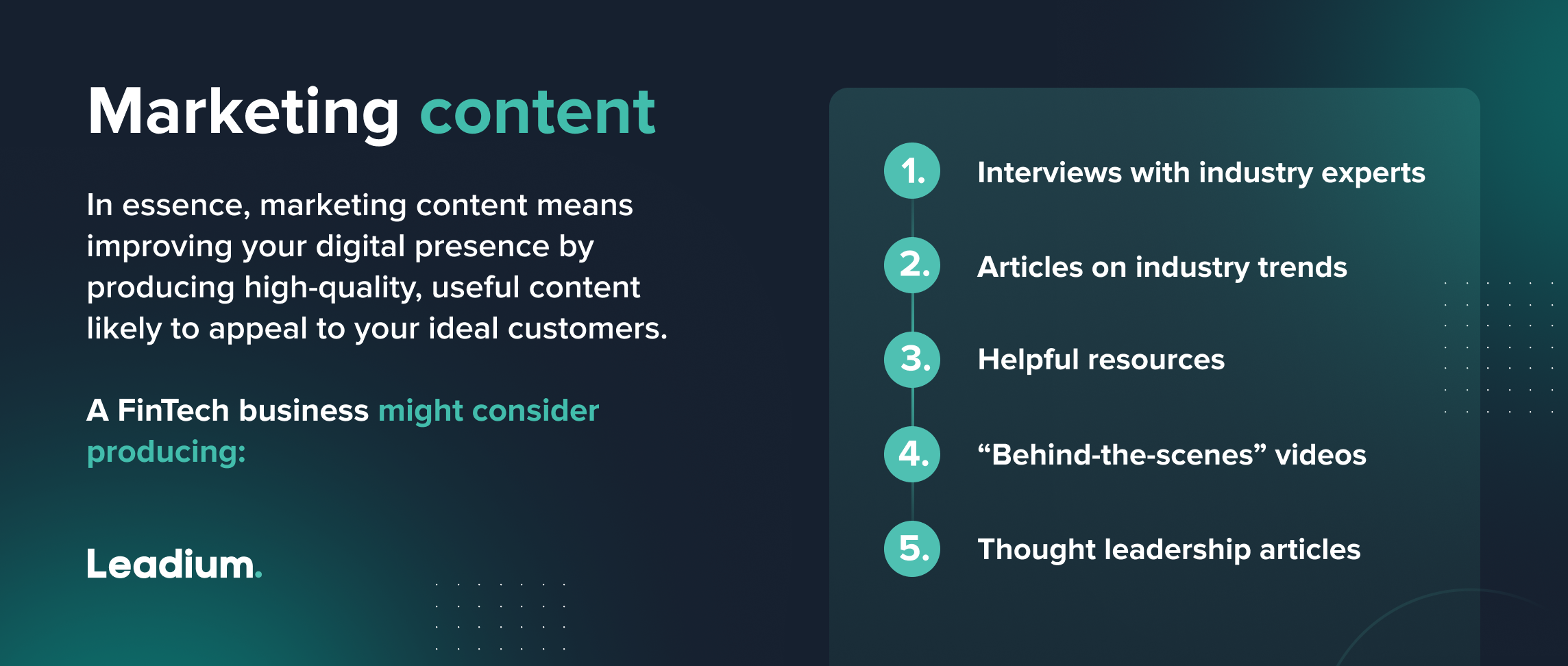 Unfortunately, we can't go into everything there is to know about lead gen for FinTech sales here, but our valuable tips provide a useful springboard for your development. And don't forget: the Leadium blog is packed full of other expert tips, exclusive interviews, and valuable resources you can leverage to start converting more qualified leads today.