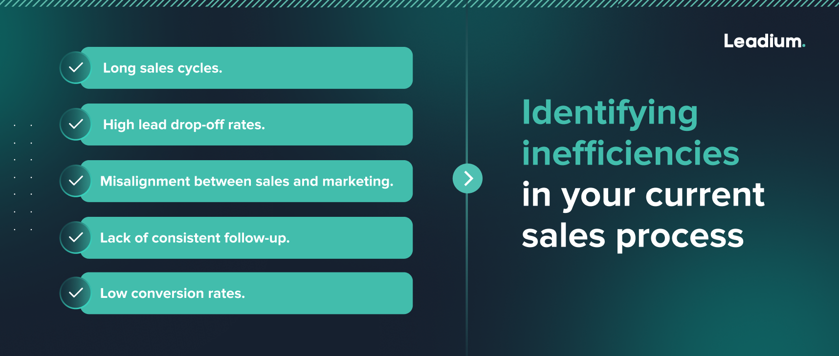 On the long road to complete sales optimization, the first step is to take a good look at your current sales process and identify where it’s falling short. Here are some common signs of an inefficient sales process to look out for: