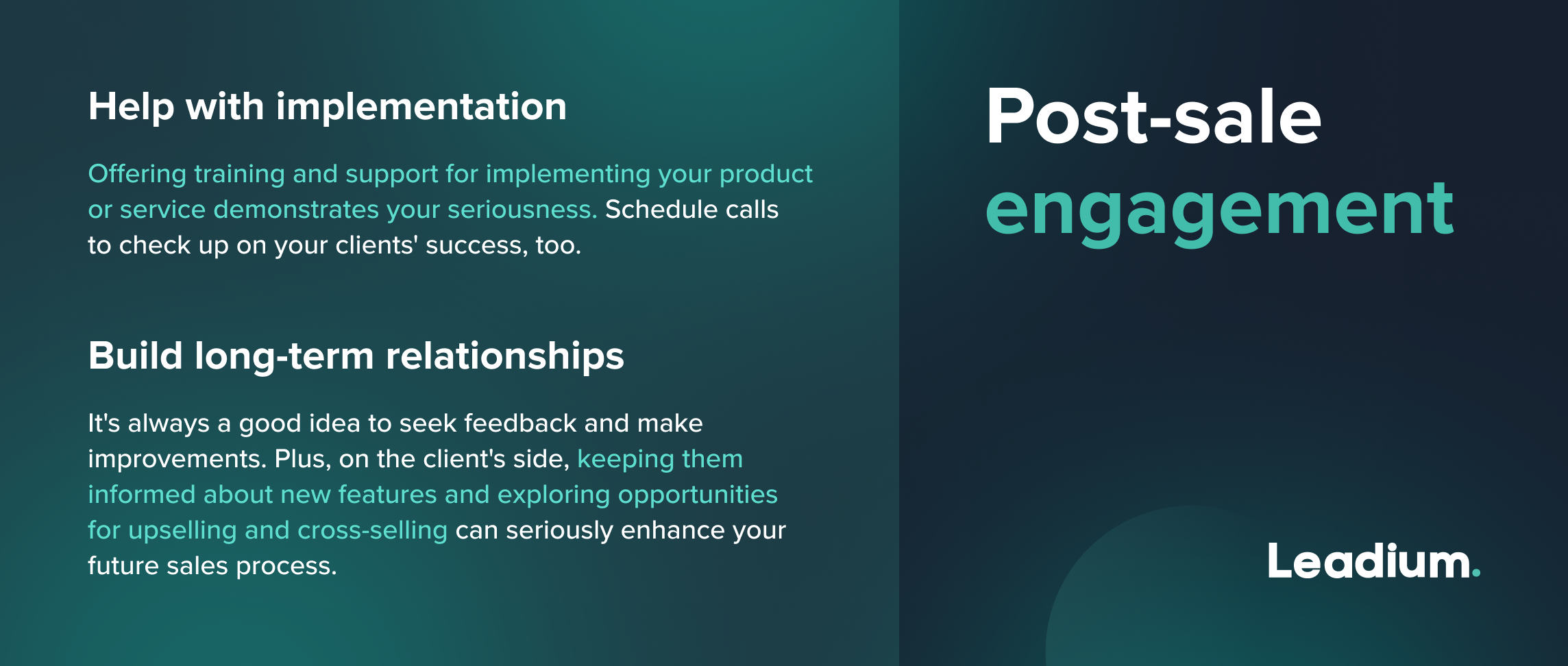 Should you be lucky enough to close the deal, maintaining post-sale engagement is key to long-term success.